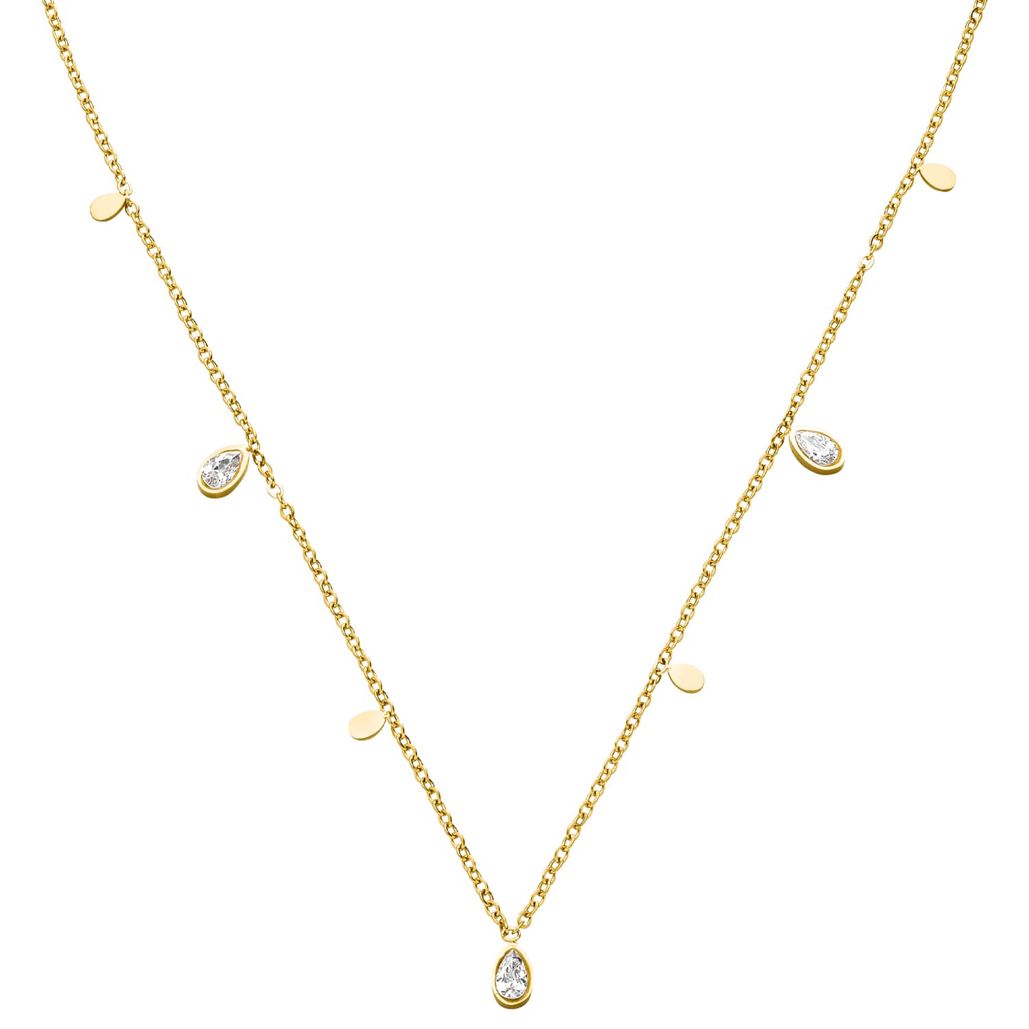 Add an elegant touch with our Shine Drops 18K Gold Plated Necklace. Delicate and radiant, this necklace showcases a beautifully detailed design adorned with alternating shimmering cubic zirconia pendants on a luminous 18K gold plated chain. Its refined elegance makes it perfect for both everyday glamour and special occasions. Designed to layer effortlessly with your favorite anna & pom pieces, it adds a subtle, enchanting sparkle that elevates every look with timeless sophistication.